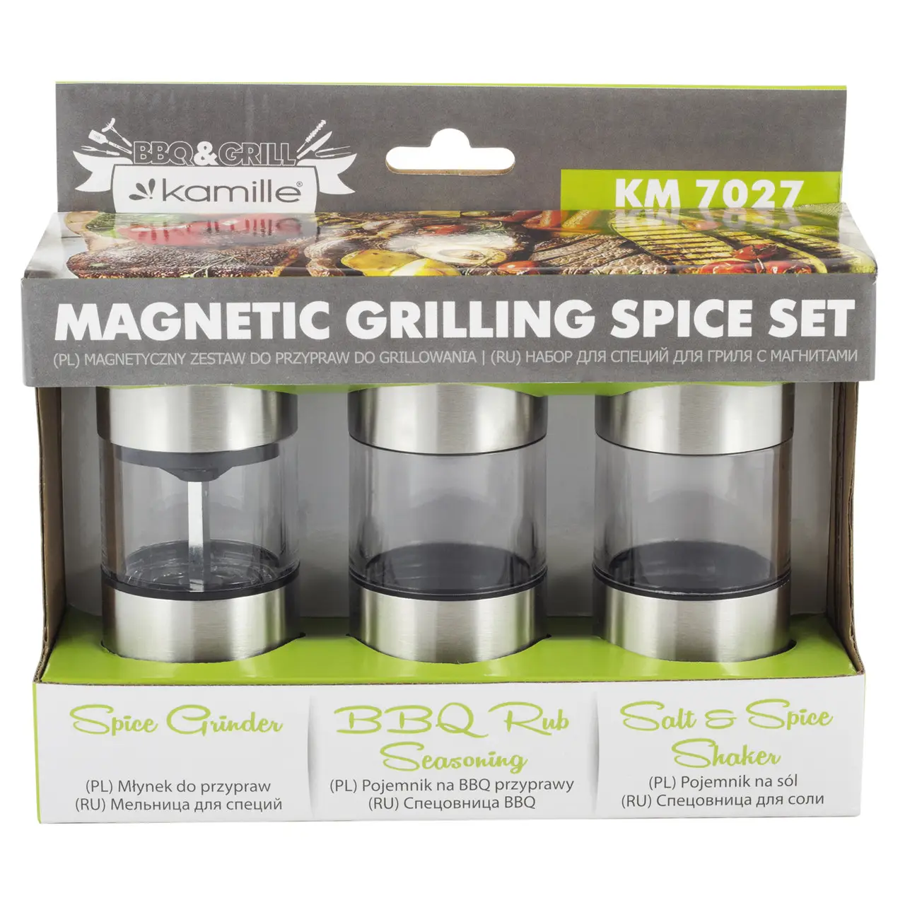 Набір ємностей із млином Kamille для спецій 3 шт. KM-7027